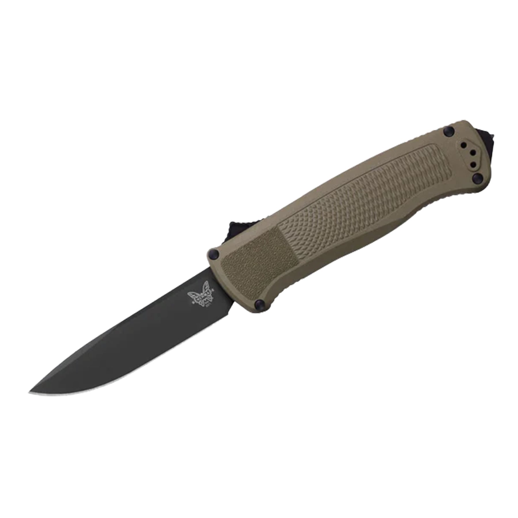 Arguably one of Benchmade’s most exciting releases, when the Shootout® launched, this handsome out-the-front in EDC form had the knife world buzzing. The new 5371FE and 5371BK-01 Shootout® variants features a more EDC-friendly drop-point blade profile with the same out-the-front double-action mechanism. The molded Grivory® handle retains the detailed grip texture that provides fast indexing and greater control in high-pressure scenarios. The 5371FE and 5371BK-01 also shed the lanyard loop, bringing back the original glass breaker — because this OTF EDC doesn’t mess around