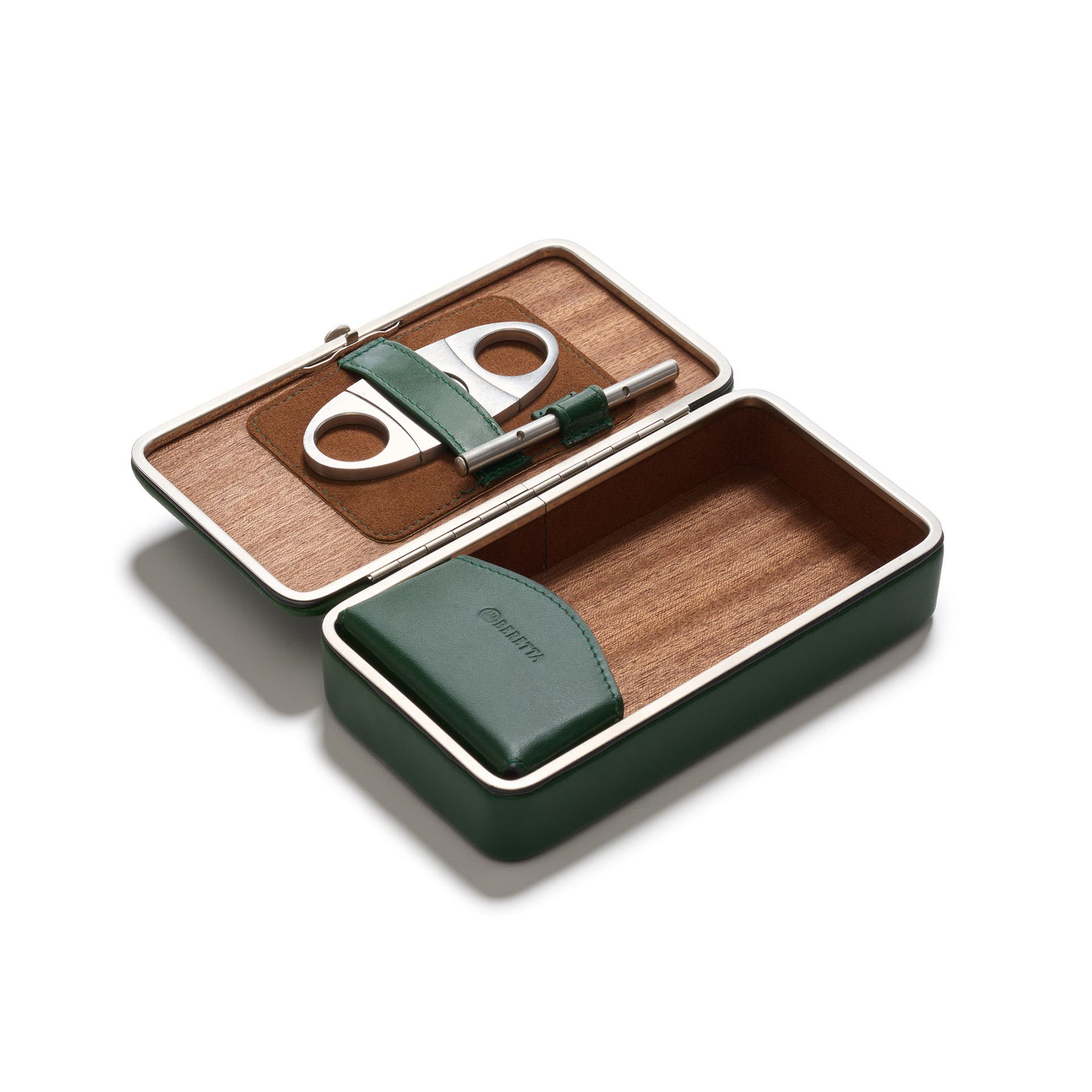 Designed for the discerning aficionado, the Beretta Classic 3 Cigar Case in Green embodies a timeless blend of tradition, refinement, and quiet sophistication. Its smooth, deep-green cowhide exterior offers a polished, understated elegance, while the structured silhouette and precision stitching reflect Beretta’s enduring commitment to artisanal craftsmanship. Inside, a beautifully crafted wooden interior provides secure, organized storage for up to three cigars, ensuring they travel in optimal condition whether for a weekend escape or an evening engagement. Purposeful compartments accommodate essential accessories, making this case both a functional companion and a symbol of elevated taste. Exclusive to the Beretta lifestyle, it pairs naturally with fine leather luggage and tailored outerwear, serving as a distinguished statement piece for those who value heritage and luxury.
