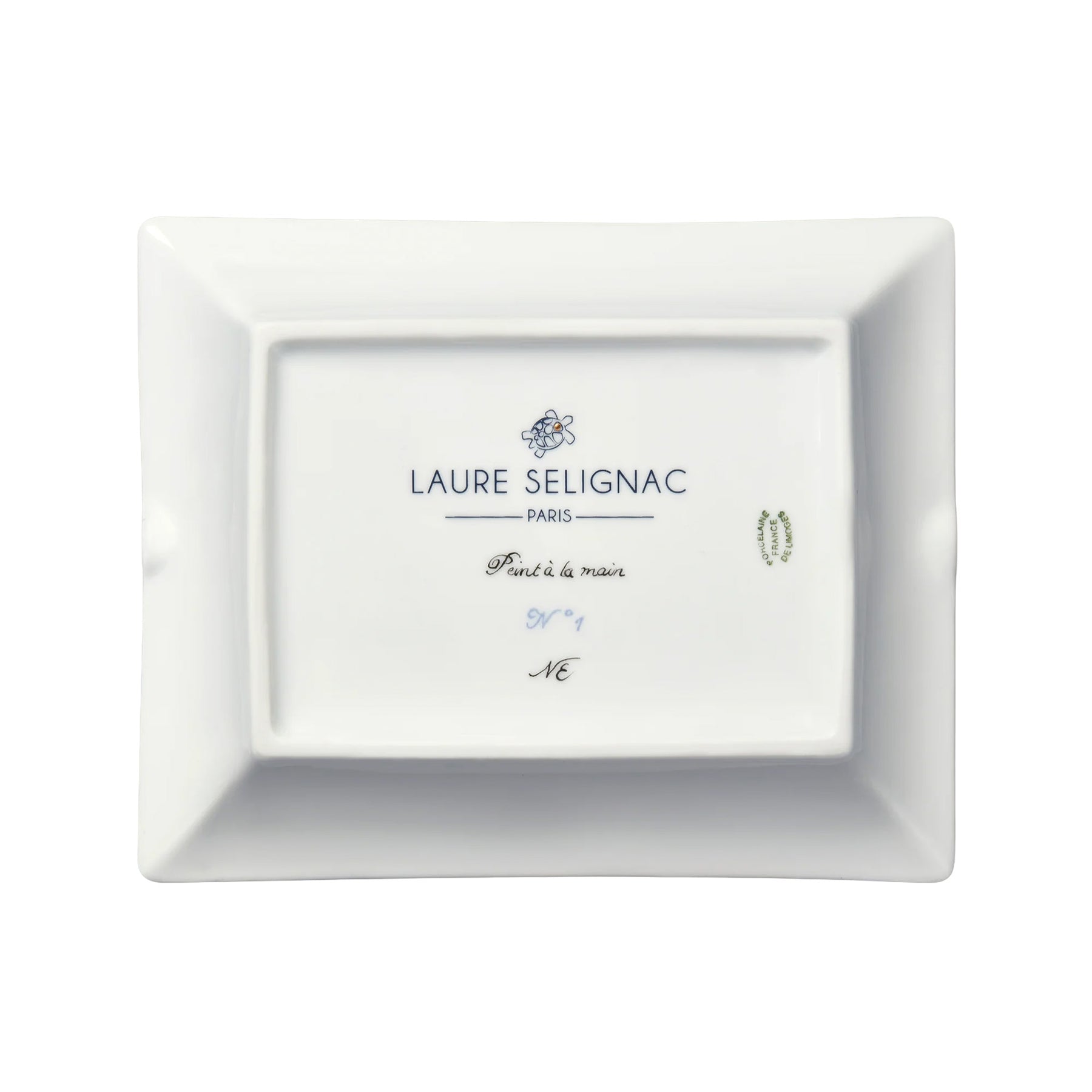Exquisite Limoges porcelain ashtray with heritage trade label inspired design in 18ct gold paint. These unique pieces are painstakingly hand painted and numbered by the artist.