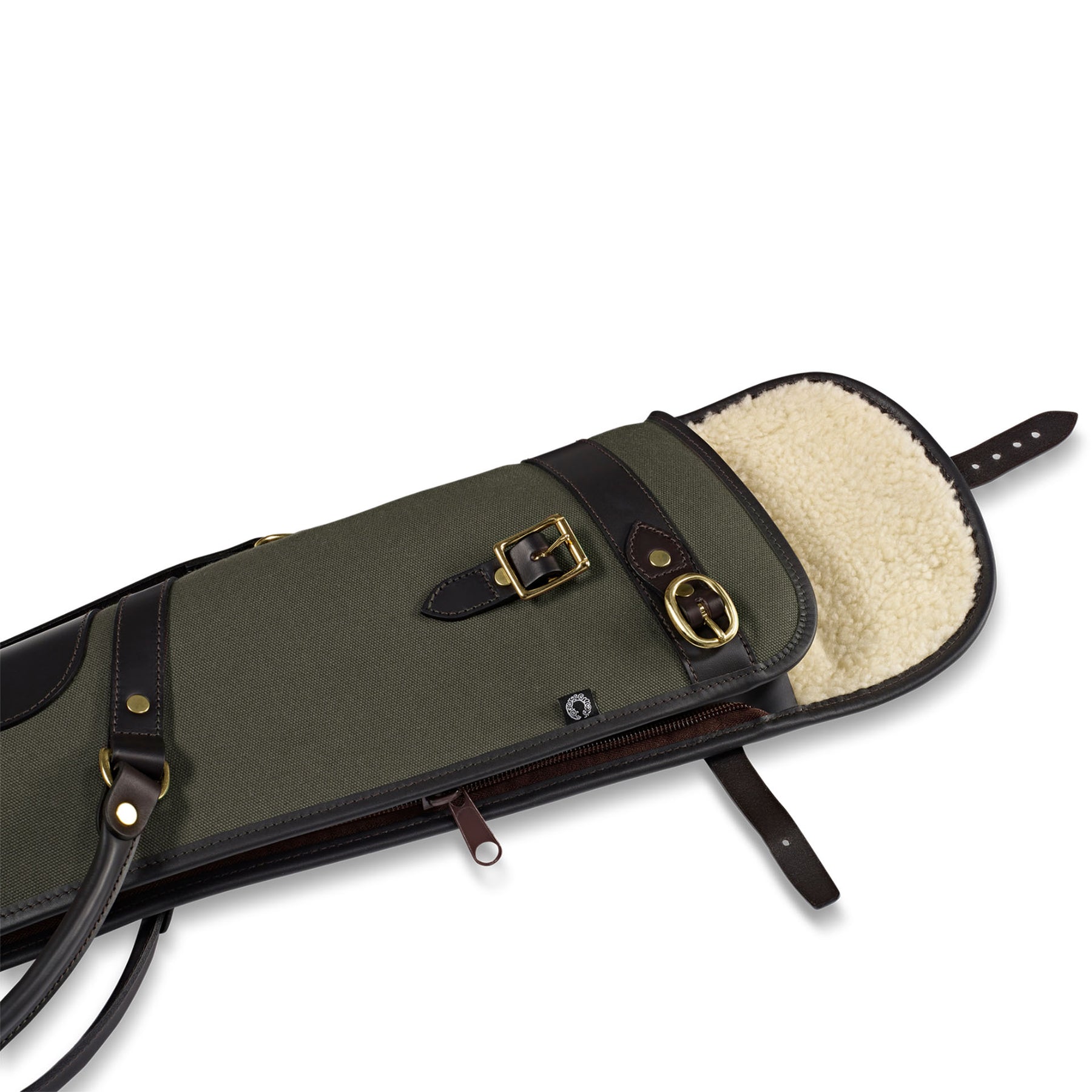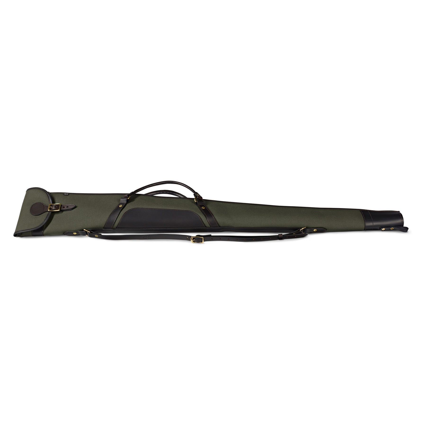 Rosedale Canvas and leather shotgun slip with a flap and buckle opening, plus a full-length zip for easy drying, and leather carry handles.