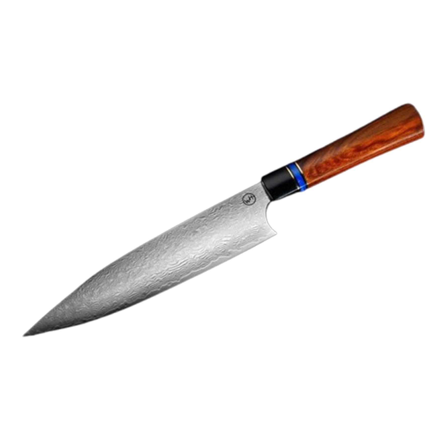 The Kultro Gourmet Series pays homage to the extraordinary Japanese tradition of fine cutlery, but with distinct choices that could only be William Henry. Five knives ranging from paring to 8” chefs are finely crafted from forged stainless damascus steel, featuring 76 layers of 316 stainless supporting a core of 10Cr15V, an edge steel that is vacuum heat treated and tempered to an optimal hardness of HRC 60 for sharpness, wear resistance, and superior performance.