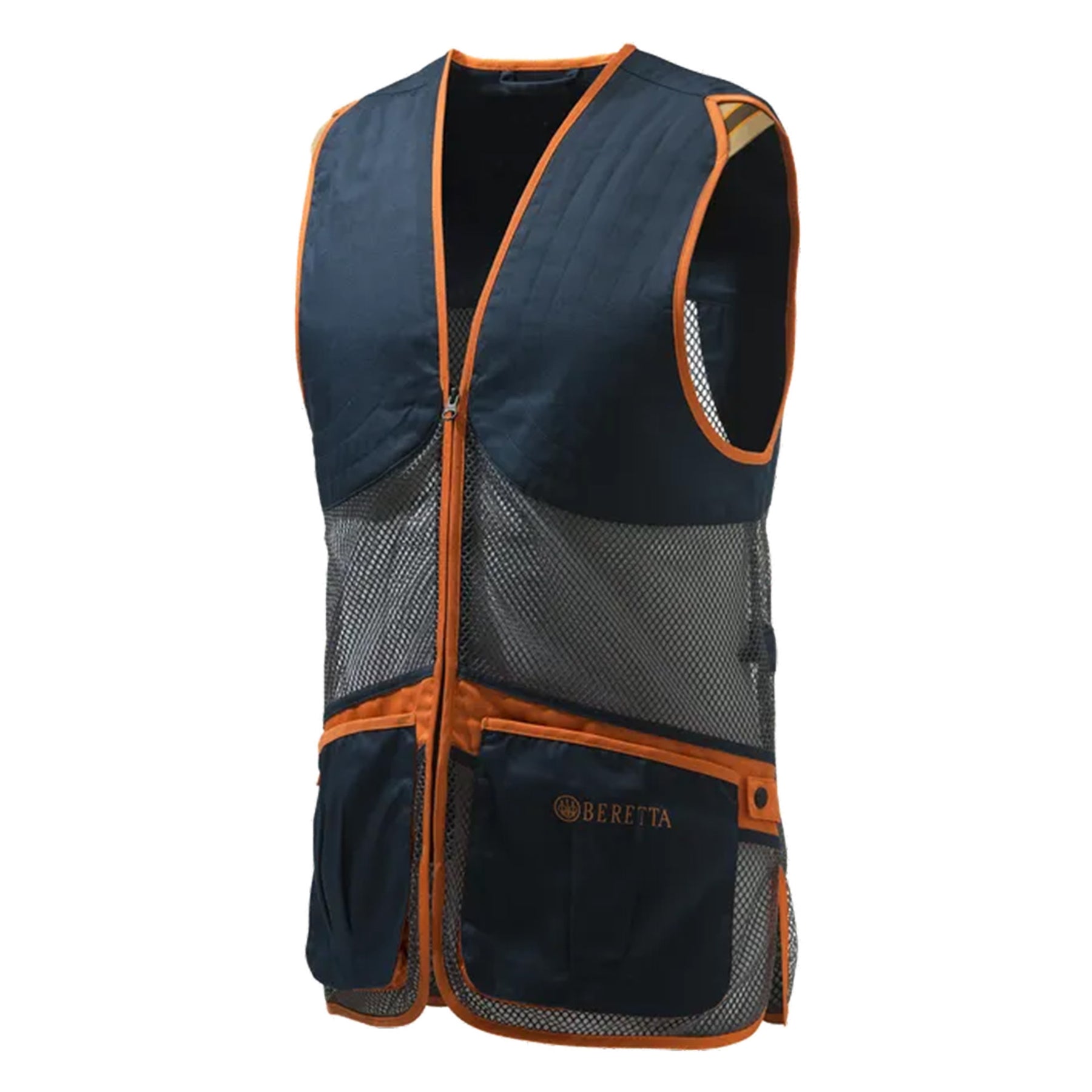 Whether in the heat of competition or just practicing out on the range, Beretta's full mesh shooting vest will help keep you cool and focused. This revolutionary cotton shooting vest leverages strategically placed, breathable mesh on the front and back to allow cool air to pass through -- even during the warmest of days. There are two front pockets to hold your cartridges and there are even inner security pockets to hold your valuables and a Beretta recoil reducer.