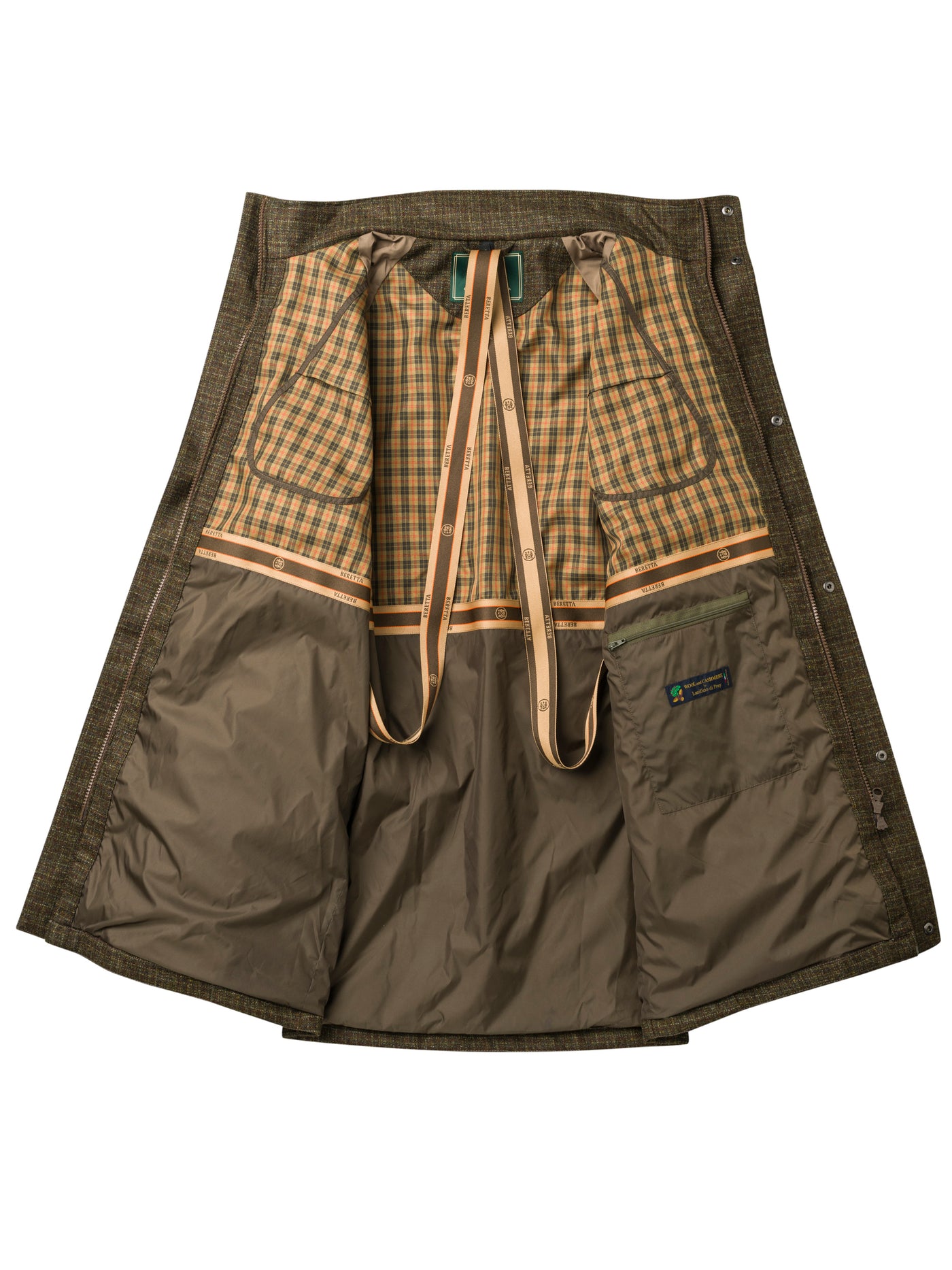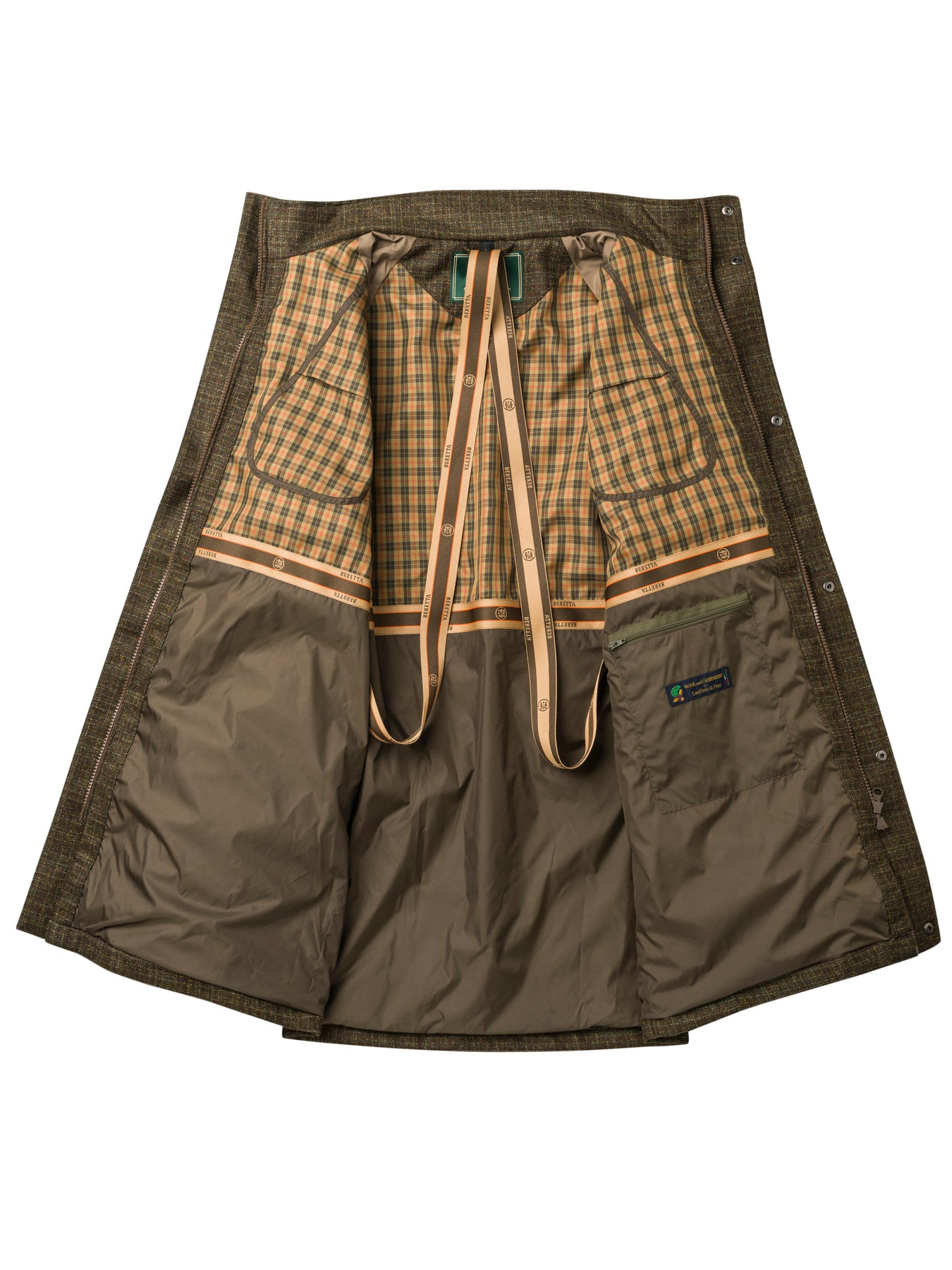 Our St. James tweed over coat for driven shooting made of Italian fine wool and cashmere, waterproof and breathable thanks to the BWB EVO-Beretta Waterproof Breathable - membrane. The introduction of our proprietary CoolMax® lining guarantees added breathability to this heritage style. Raglan sleeve construction eases freedom of movement while shouldering and aiming high. Can be combined with our St. James jacket, vest and breeks.