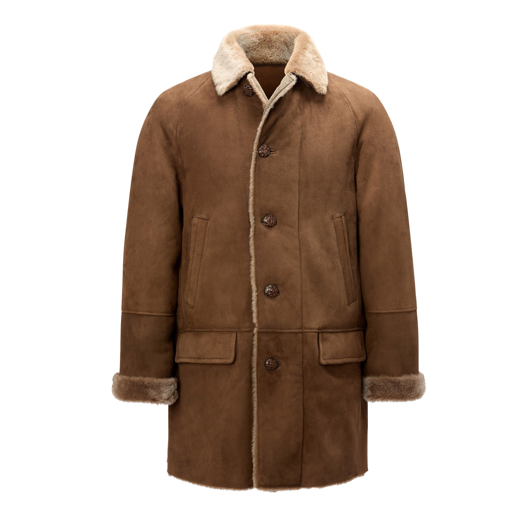 A statement in alpine luxury and timeless winter craftsmanship, the Meindl Lethbridge Coat is designed for those who expect enduring warmth without compromising on sophistication. This heritage inspired coat is crafted in a rich Muskat tone and showcases Meindl’s renowned mastery in traditional outerwear, blending rugged practicality with unmistakable refinement. The exterior reveals a velvety suede finish with clean, classic lines, while the interior is fully lined in plush shearling that continues into the collar and cuffs for exceptional insulation and a naturally elegant contrast. A button front closure, flap pockets, and subtly angled hand warmers underscore the coat’s functional design, ensuring effortless wear whether navigating countryside weekends or brisk city commutes. With its structured yet comfortable silhouette, the Lethbridge pairs seamlessly with knitwear and tailored trousers, elevating cold weather dressing with ease. Handcrafted with the meticulous attention to detail Meindl has upheld for generations, this coat stands as an exclusive expression of enduring style and alpine tradition.