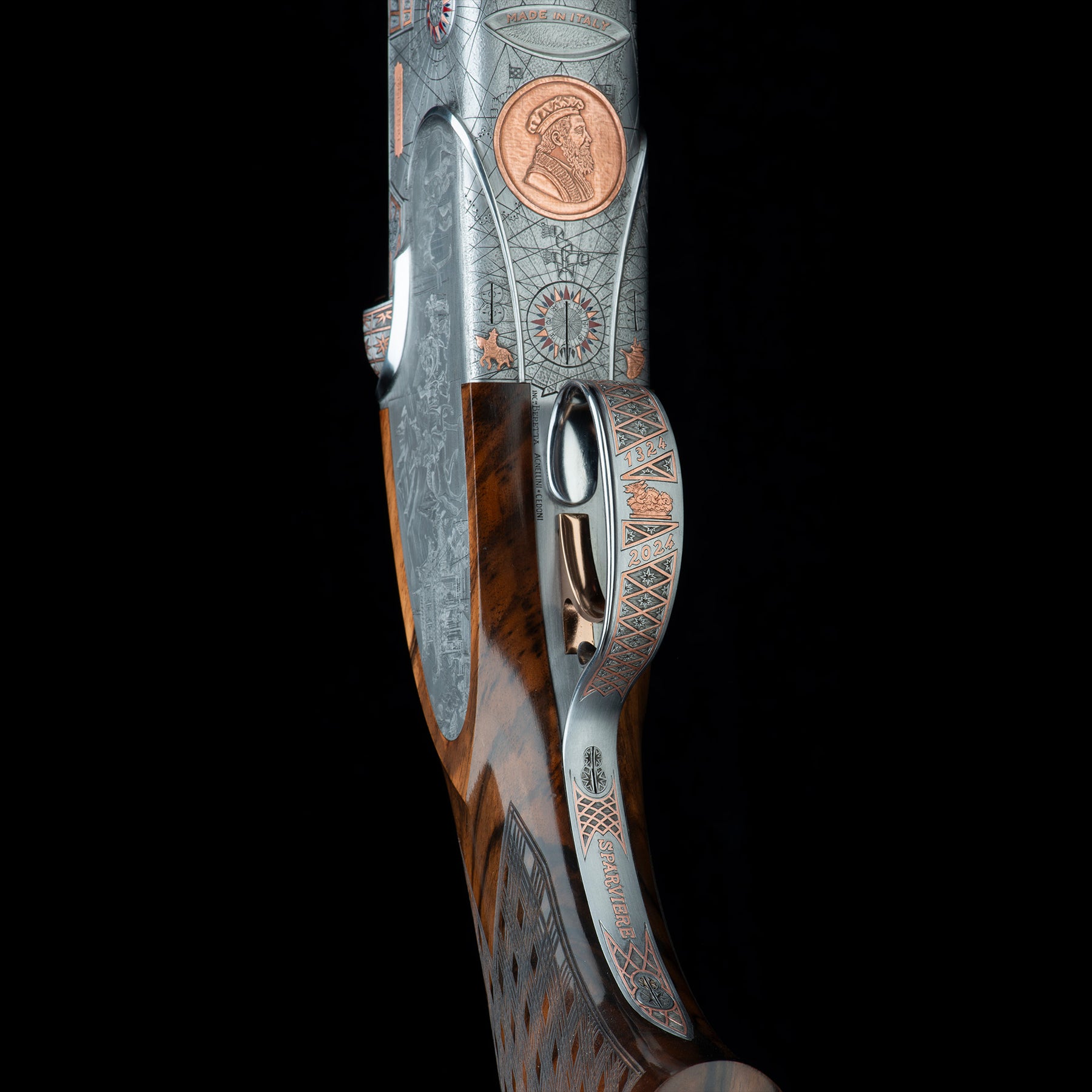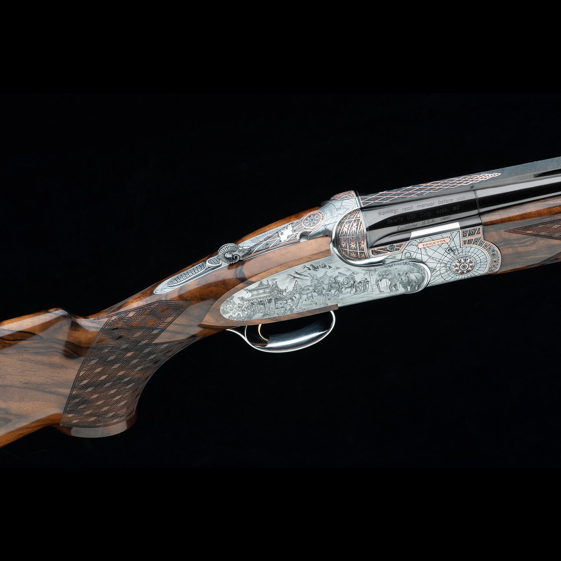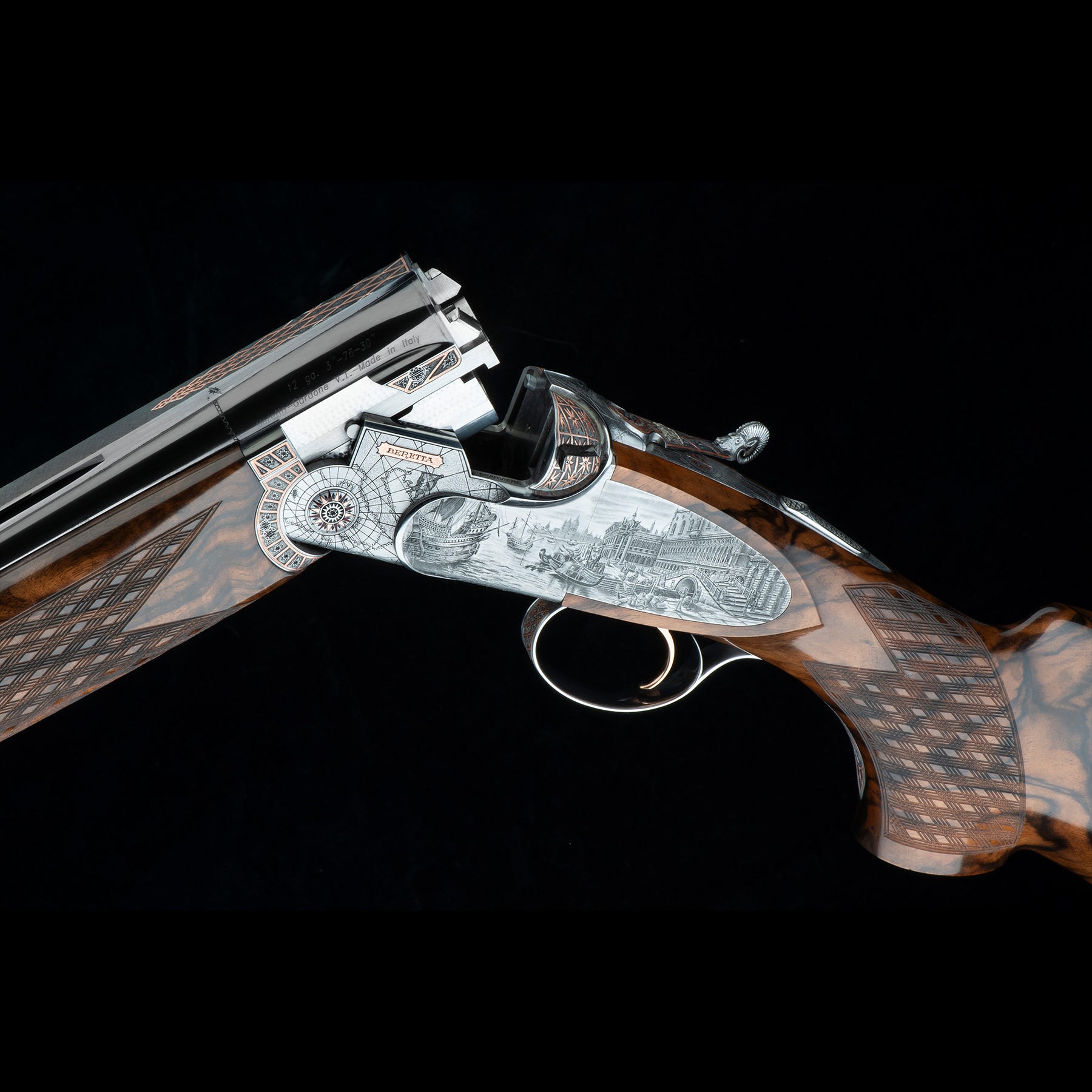 Engraved by Master Artisan Dario Cortini, the action features over 800 hours of intricate high-relief work, depicting iconic scenes from Polo’s travels—crafted in gold and steel. Every contour of this shotgun, from its hand-rubbed walnut stock to the precisely balanced 30" barrels, is designed to evoke emotion and elevate experience.