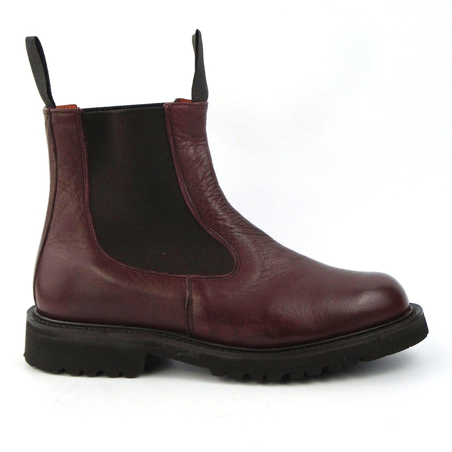 Tricker's Women's Paula Chelsea Boot in burgundy features a classic side elastic design with a storm welt for durability and water resistance. Built with the brand's signature craftsmanship, this boot delivers timeless style and reliable performance.