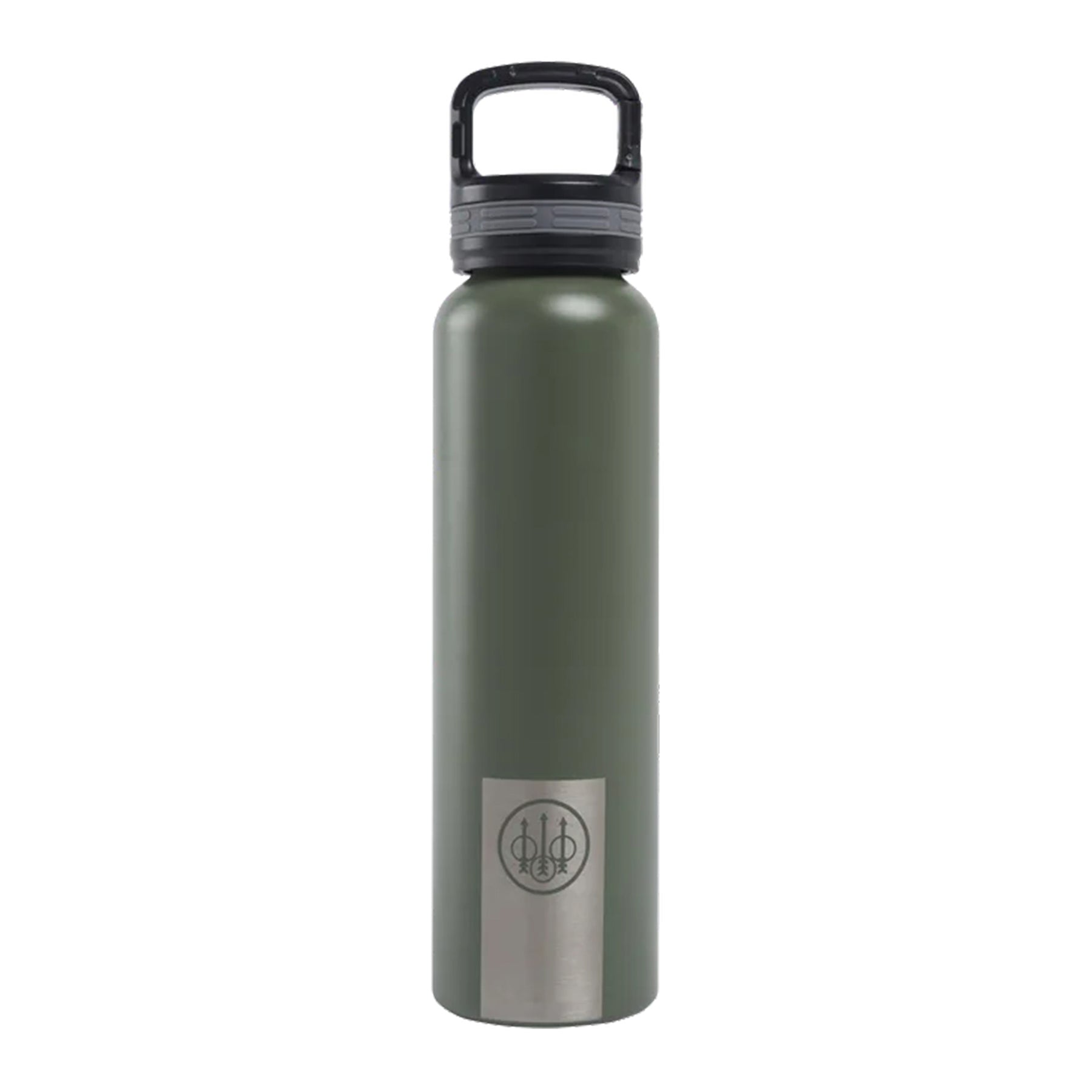 24 Oz durable stainless steel Beretta water bottle. Keeps liquids either cold or hot for up to 8 hours. Insulation guaranteed by the double chamber design. The vacuum insulation protects the liquid from the outside temperature. The lid with vacuum seal provides additional insulation. Integrated carabiner inside the lid to hook it onto your backpack. Powder coating for excellent resistance and durability. Both the lid and the bottle are dishwasher safe.
